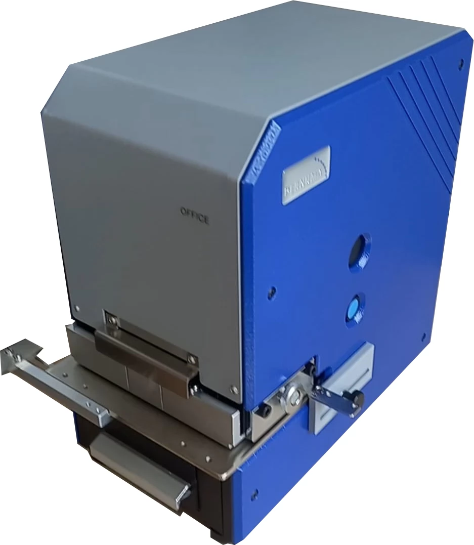 PERNUMA OFFICE-T adalah Electric Text Perforating Machine yang hanya berfungsi untuk menandai/marking Huruf (Text/Letter) maksimal sampai dengan 3 baris. Huruf/Text bersifat Tetap/Patent dan dapat dipesan sesuai kebutuhan kapasitan standar perforasi 20 lembar kertas 70Gr. Mesin ini diproduksi dengan teks tetap pilihan Anda. Model ini dapat berisi 3 baris dengan maks. lebar 80 mm. Ketinggian karakter standar adalah 6, 8 atau 10 mm. Semua mesin perforasi dari seri OFFICE kami dilengkapi dengan dieunit tipe blok yang mudah diganti. Kedalaman penyisipan adalah ca. 42 mm. Hingga 20 lembar kertas 70 g/m2 dapat dilubangi dalam satu operasi tergantung pada jumlah digit. Tinggi penyisipan adalah 2 mm. Perforasi dilakukan dengan tombol tekan yang dikencangkan secara lateral. Sakelar utama ada di bagian belakang alat berat. .