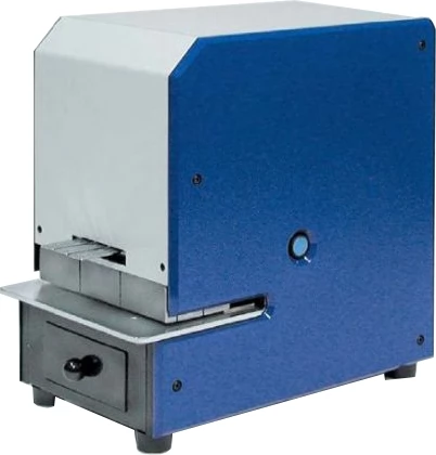 PERNUMA OFFICE - D adalah Mesin Perforasi Elektrik Mesin ini dilengkapi dengan set lengkap slide Metal Stick yang terdiri dari 18 pcs, standarnya versi ini dapat melubangi tanggal 6 digit (28.01.12). Model ini dapat berisi 3 baris HURUF dan ANGKA dengan maks. lebar masing-masing 80 mm, misalnya tanggal dan teks tetap di atas atau di bawahnya. Ketinggian karakter standar adalah 6, 8 atau 10 mm. Semua mesin perforasi dari seri OFFICE dilengkapi dengan unit blok yang mudah ditukar. Kedalaman penyisipan adalah ca. 42 mm. Hingga 20 lembar kertas 70 g/m2 dapat dilubangi dalam satu operasi tergantung pada jumlah digit. Tinggi penyisipan adalah 2 mm. Perforasi dilakukan dengan pengikatan lateral tekan tombol. Sakelar utama ada di bagian belakang mesin. Semua mesin OFFICE dapat dilengkapi dengan kaki sakelar atau kunci pengaman.