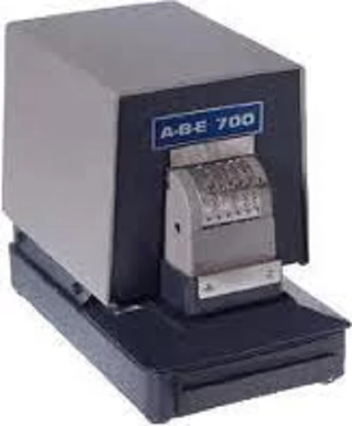 A-B-E 700 adalah Electric Perforating Machine untuk keperluan Marking dokumen dan dapat dipesan sesuai kebutuhan baik TEXT, DATE, NUMBERING, LOGO atau Kombinasi dari semuanya. Untuk Marking Angka perforator ini menggunakan Ring ( wheel) yang biasa digunakan untuk Penomoran ( Numbering) atau Penanggalan ( Date) serta masing masing Ring memiliki Angka 0 – 9 serta dapat ditambahkan HURUF ( Text) bersifat tetap/ patent yang diposisikan diatas atau dibawah Angka tersebut sesuai kebutuhan. Line Marking tersedia 1 s/ d 3 baris dengan Kapasitan standar perforasi 20 lembar kertas 70gr.